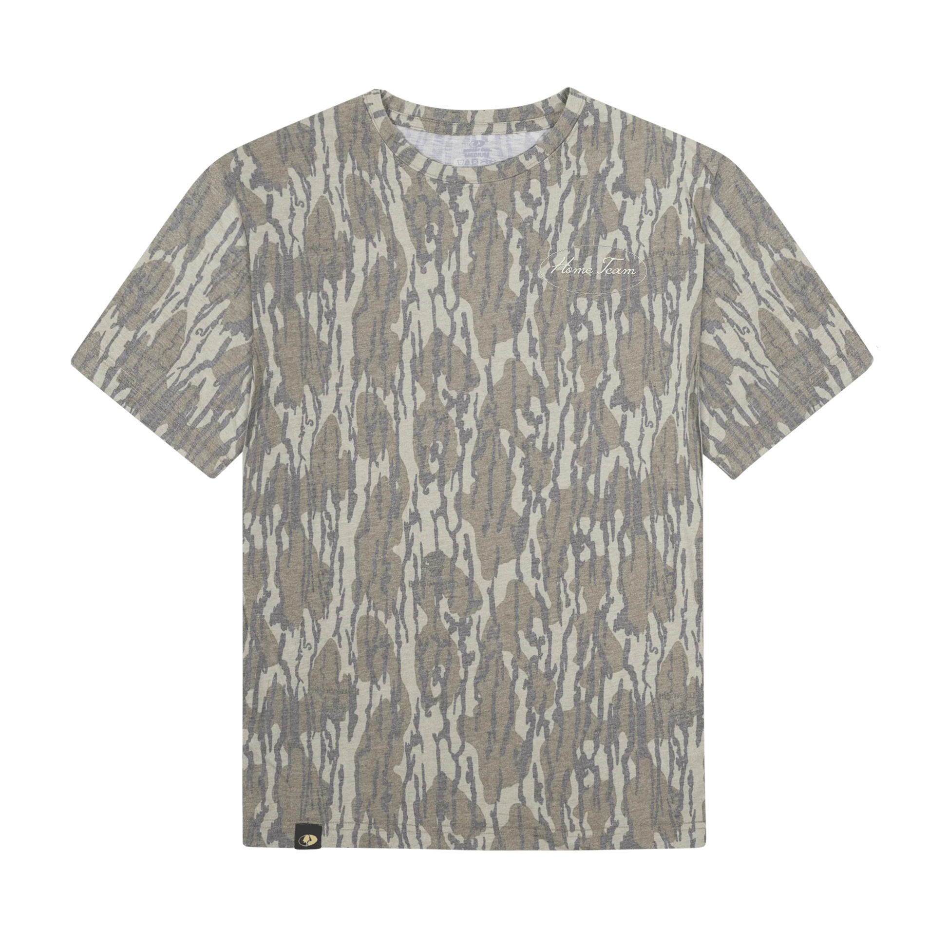 Mossy Oak camo tee with cream Home Team embroidery on the front left chest.